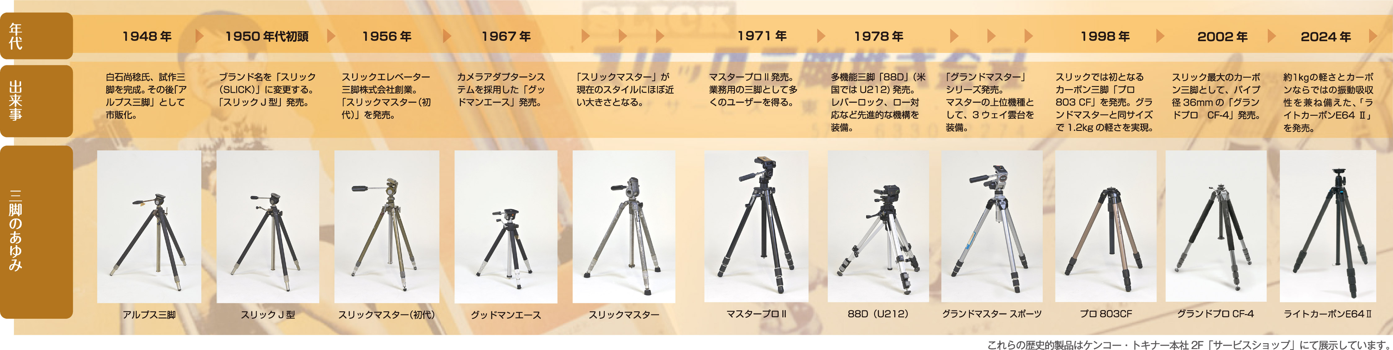 当社は 1948 年の創業以来、「写真・映像文化の発展に貢献する」ことを使命とし、三脚をはじめとする撮影機材の開発・製造に取り組んでまいりました。